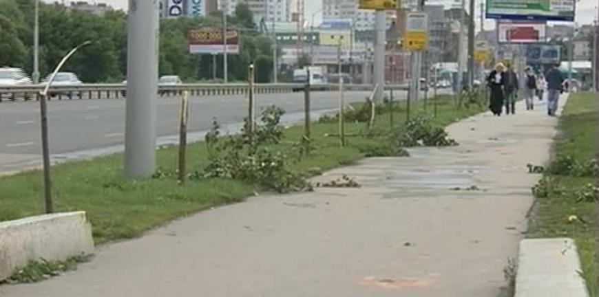 На Московском шоссе минувшей ночью вандалы сломали 16 молодых лип, высаженных на тротуаре между торговыми центрами.