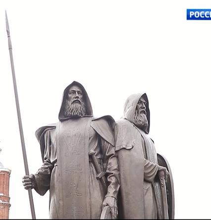 В селе Вослебово установили памятник преподобным Александру Пересвету и Андрею Ослябе