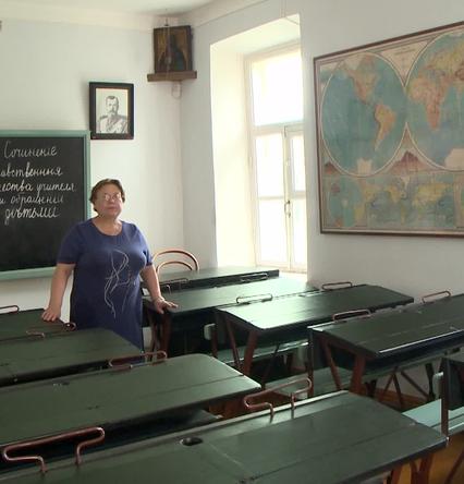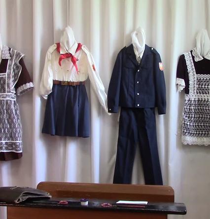 В экспозиции школьные принадлежности 40-х годов. Современные ученики могут увидеть здесь, как учились их родители, бабушки и дедушки.