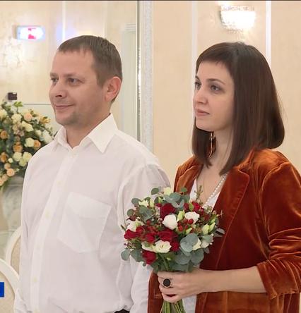 Супруги Захаровы отметили юбилей семейной жизни походом в ЗАГС. Там для них устроили целую церемонию, на которой снова звучал марш Мендельсона, и ожили те самые свадебные воспоминания - согласие, роспись, кольца, поцелуй.