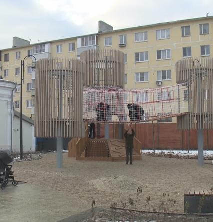 На ней есть канатная дорожка, горка-тоннель. Строители ещё завершают монтаж, а посетители уже осваивают новое игровое пространство.