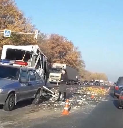Под Рязанью столкнулись фура с автобусом