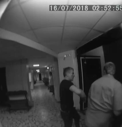 Момент нападения сняли камеры видеонаблюдения. На кадрах видно, как пациент набрасывается с кулаками на врача, который в этом момент стоял к нему спиной.