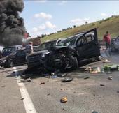 Авария случилась в воскресенье. По данным полиции, водитель грузовика не смог затормозить и врезался в ехавший впереди автомобиль.