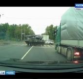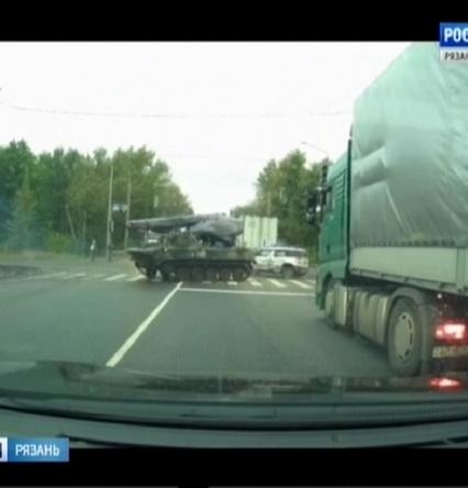 Необычное ДТП случилось накануне в Рязани. БМД врезался в иномарку. Кадры в соцсеть выложили водители машины, которые ехали следом. Все произошло на перекрестке Ряжского шоссе и Южной окружной дороги.