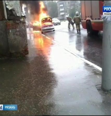 В центре Рязани сгорела машина