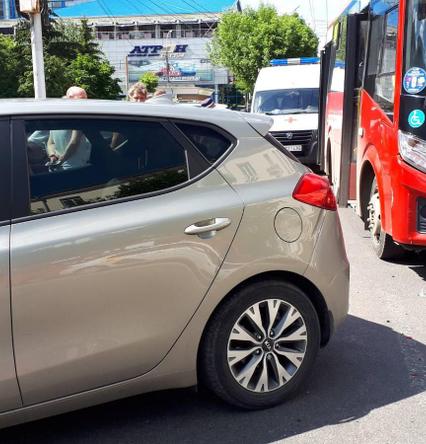 В центре Рязани столкнулись легковушка и автобус