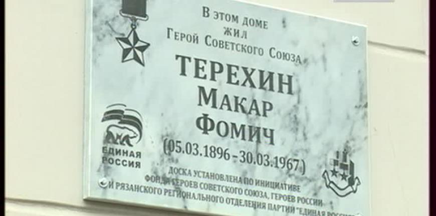 Патриотический проект партии «Единая Россия» «100 дней до Победы» увековечит имена Героев. В Рязани сегодня открыли мемориальную доску в честь нашего земляка, Героя Советского Союза Макара Терёхина.