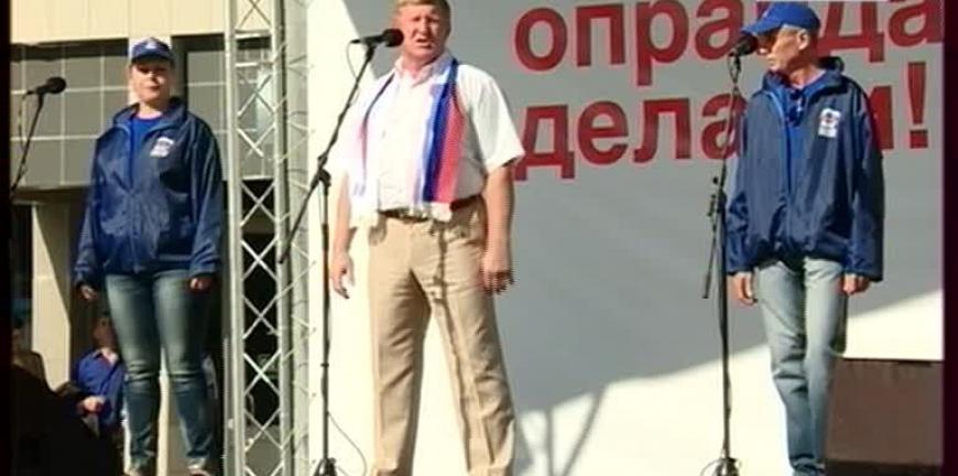 Песнями отметила партия «Единая Россия» победу на выборах в региональный парламент. Официальные речи на торжественном митинге на площади Победы перемежались выступлениями новоизбранных депутатов.