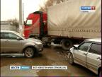 Движение на Окском проезде на несколько часов было парализовано. Обе полосы перекрыла фура. Грузовик не поврежден, но стал невольным участником ДТП.