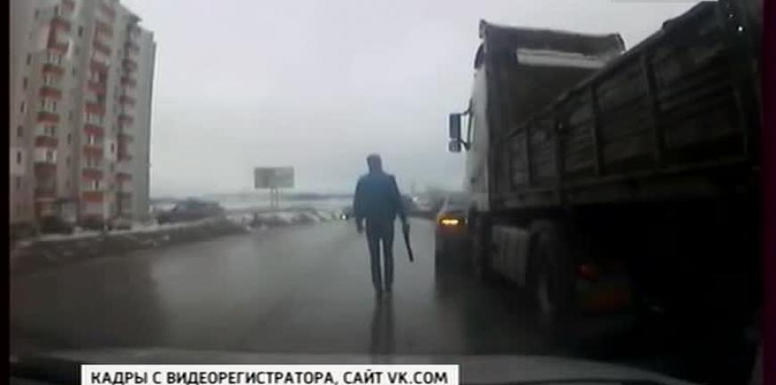 Как позже пояснили полицейским участники конфликта, причиной ссоры стало якобы нарушение правил дорожного движения. Водители припарковали свои авто, после чего мужчина, управлявший легковушкой, достал оружие и выстрелил по грузовику. А тяжелая машина двинулась вперед, толкая впереди легковую. У нарушителя было изъято травматическое оружие и патроны.