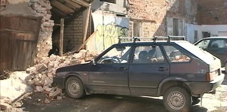 В центре Рязани обрушилась стена заброшенного дома. Осыпалась кирпичная кладка, под завалами оказался припаркованный автомобиль, отечественная «Лада» девятой модели.