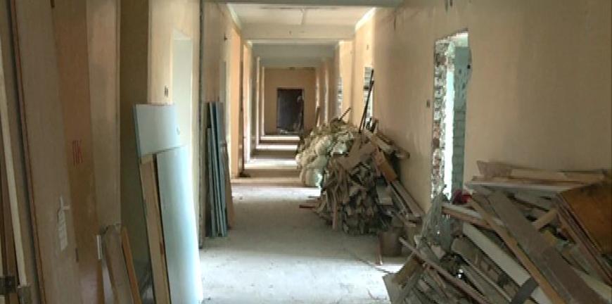 В отделении пульмонологии непривычно шумно и грязно. Но иначе хронические болезни этих помещений не вылечишь, объясняют строители: краска и полы растрескались и облупились, а электрика и система водоснабжения давно морально устарели. Первые манипуляции - черновые - рабочие убирают стяжку. Строители объясняют - заменят абсолютно всё - от пола до потолка.