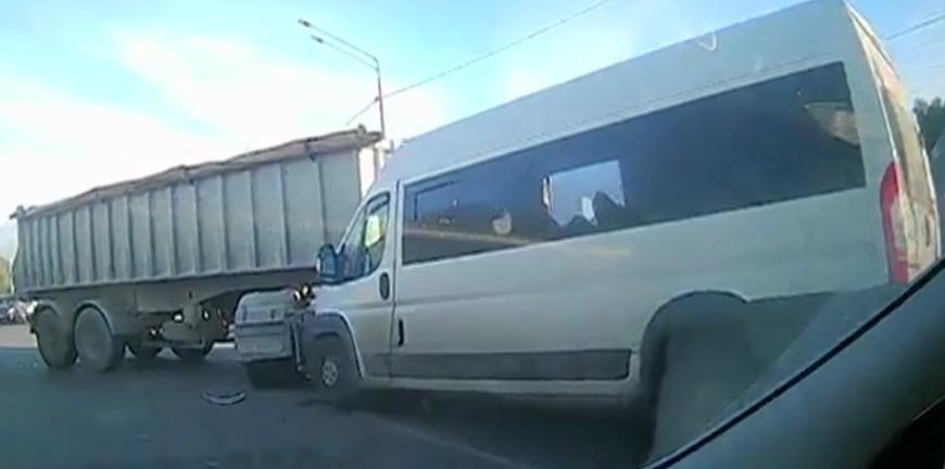За большегрузом двигался пассажирский микроавтобус. По данным УМВД, водитель маршрутки не справился с управлением и столкнулся с большегрузом.