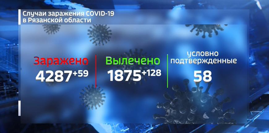 В Рязанской области подтвердили 59 случаев заражения коронавирусом. Еще 58 положительных тестов находятся на подтверждении регионального Минздрава. Под контролем врачей находятся более 4345 человек.