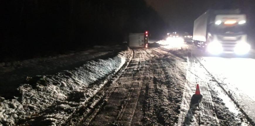 Как сообщает пресс-служба регионального УМВД, 61-летний житель Республики Киргизия, управляя грузовым автомобилем «Вольво» с полуприцепом, по предварительной информации, не справился с управлением, в следствие чего допустил съезд с дороги с последующим опрокидыванием на левый бок.