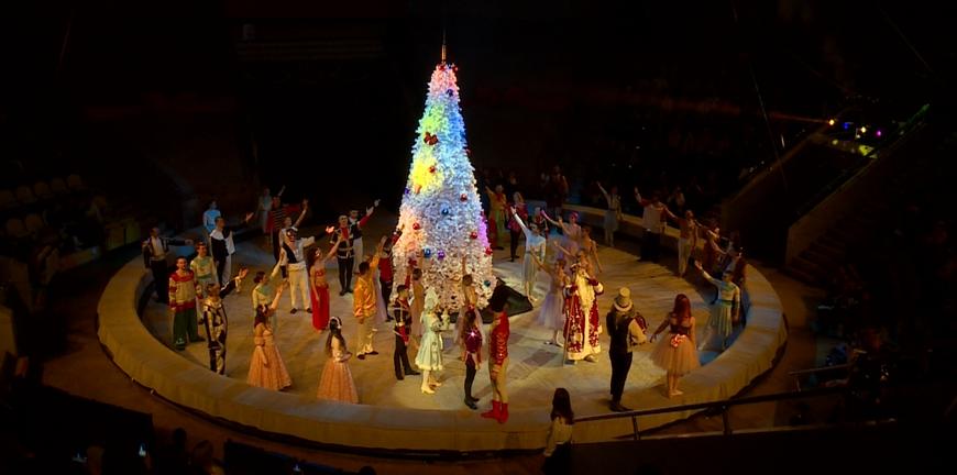 Новогодняя цирковая фантазия открывается настоящей фантасмагорией в духе Гофмана. Многоуровневая сцена, огромные стилизованные коробки с подарками, и даже стены, и те рассказывают, быть может, самую сказочную новогоднюю историю Щелкунчинка.