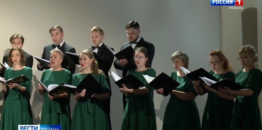 На сцене - рязанский камерный хор, один из самых молодых коллективов филармонии. Он появился всего 7 лет назад и уже завоевал любовь рязанских слушателей.