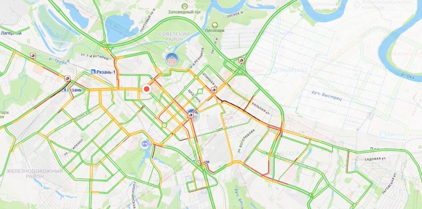 Дольше всех добирались до работы жители Дашково-Песочни. Пробка сковала Касимовское шоссе и прилегающие второстепенные улицы. Причина, вероятно, также в аварии, она произошла на перекрестке улиц Есенина и Грибоедова.