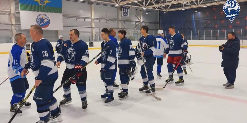 На лед вышли хоккеисты 50 плюс и их дети.