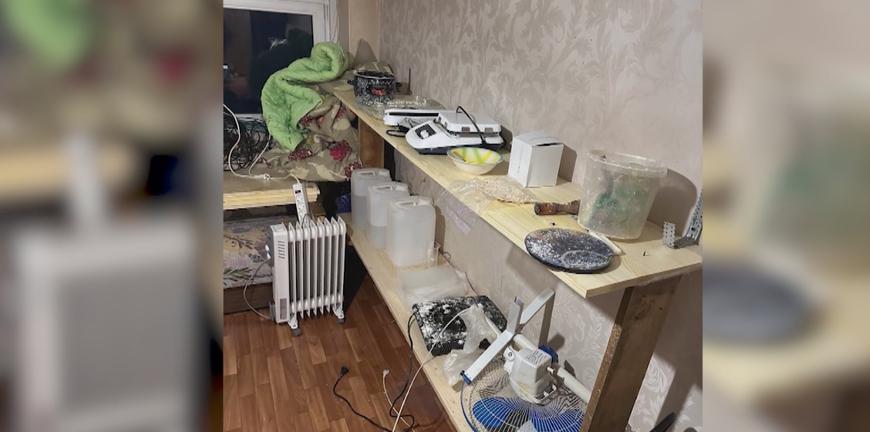 Полицейские и сотрудники УФСБ задержали хозяина прямо в процессе приготовления очередной партии синтетического зелья. Всего изъято более 65 килограммов вещества.