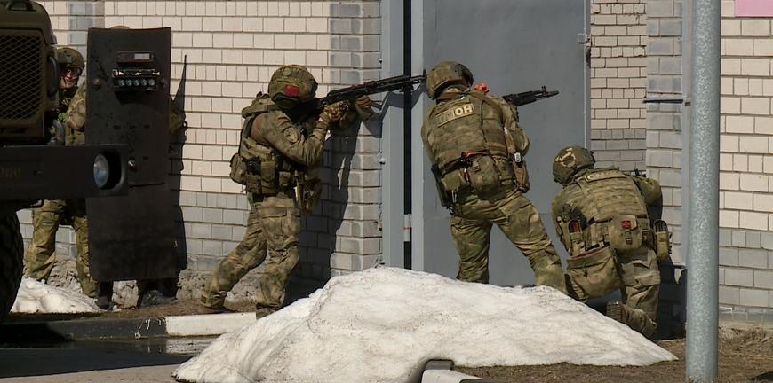 И хотя патроны холостые – к штурму здания рязанские ОМОНовцы подходят серьёзно: ударная группа — наготове, разведку местности осуществляют с воздуха.