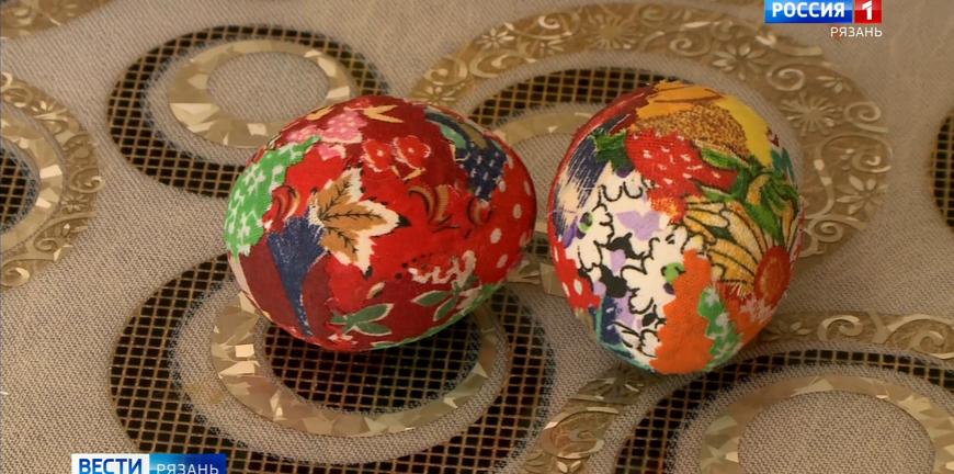 Пока на плите продолжается химический процесс Любовь Петрунина делится своим творчеством - пасхальные яйца, вышитые лентами, фигурки животных и птиц, кропотливый труд дарит удовольствие. Также, как и процесс подготовки к празднику Воскресения.